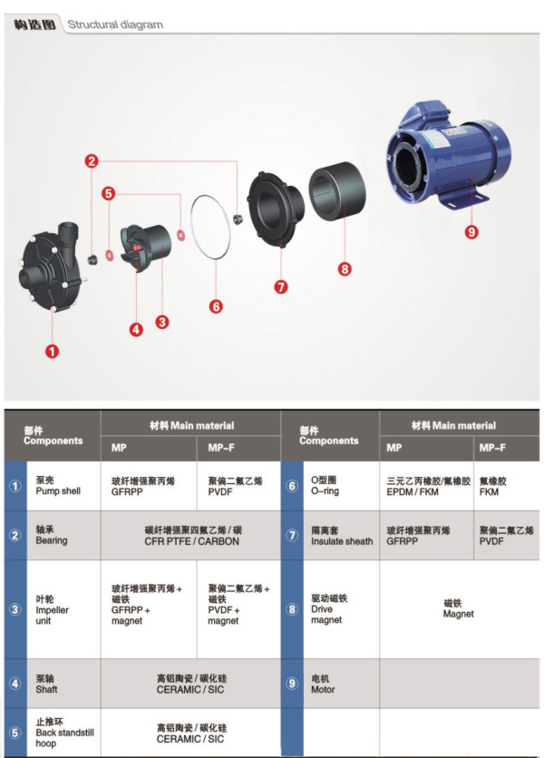 1根據(jù)耐腐蝕磁力泵的拆卸順序,一些小組件不需要拆卸,盡量不要拆卸。